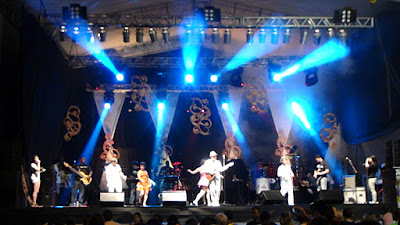 no palco e circulando na praça, e a colaboração de 1.200 voluntários.